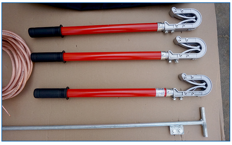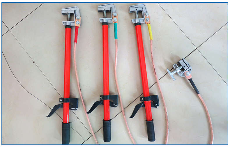 (3)制作工藝: 導(dǎo)線夾、接地夾采用鋁合金或紫銅壓鑄成形;操作棒是玻璃鋼環(huán)氧樹脂管;接地軟銅線采用多股軟銅線絞合而成,外覆透明絕緣護(hù)層。